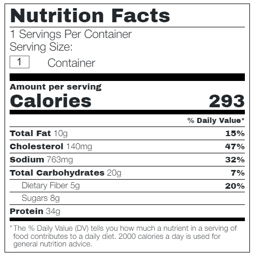 Instructions: We recommend freezing meals that will not be consumed within 3 days. Microwave on high for 1-2 minutes.