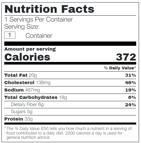 Instructions: We recommend freezing meals that will not be consumed within 3 days. Microwave on high for 1-2 minutes or eat cold.