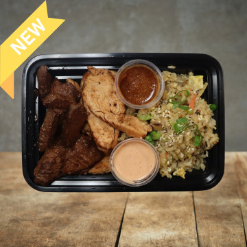 Ingredients: top sirloin, chicken breast, cauliflower, yum yum sauce (fat free mayonnaise, garlic powder, paprika, salt, pepper, rice vinegar, tomato paste, unsalted butter), ginger sauce (tamari, fresh ginger, onion, lemon), carrots, green onion, salt, pepper, garlic, spices.