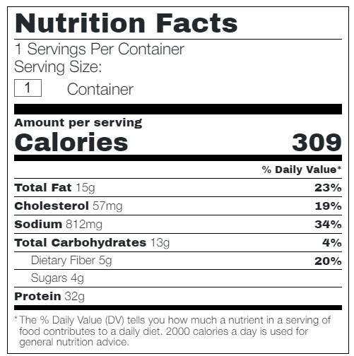 Instructions: We recommend freezing meals that will not be consumed within 3 days. Microwave on high for 1-2 minutes,