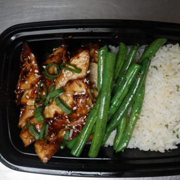 This meal is a combination of savory teriyaki chicken with a side of low-carb cauliflower rice and fresh green beans. The teriyaki chicken is marinated in a sweet and savory sauce made from soy sauce, honey, garlic, and ginger, then grilled until golden and juicy. Served along with cauliflower rice and seasoned green beans. This meal is a flavorful and nutritious way to enjoy your protein, vegetables, and carbohydrates all in one.